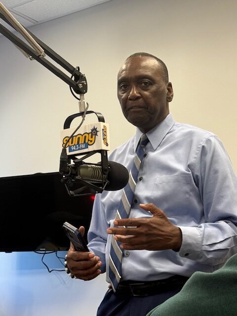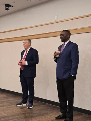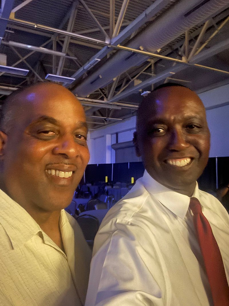 Commissioner Charles Evans and District Attorney Billy West discuss the Expungement Clinic at Commissioner Evans’s Project Fresh Start event at the Department of Social Services.